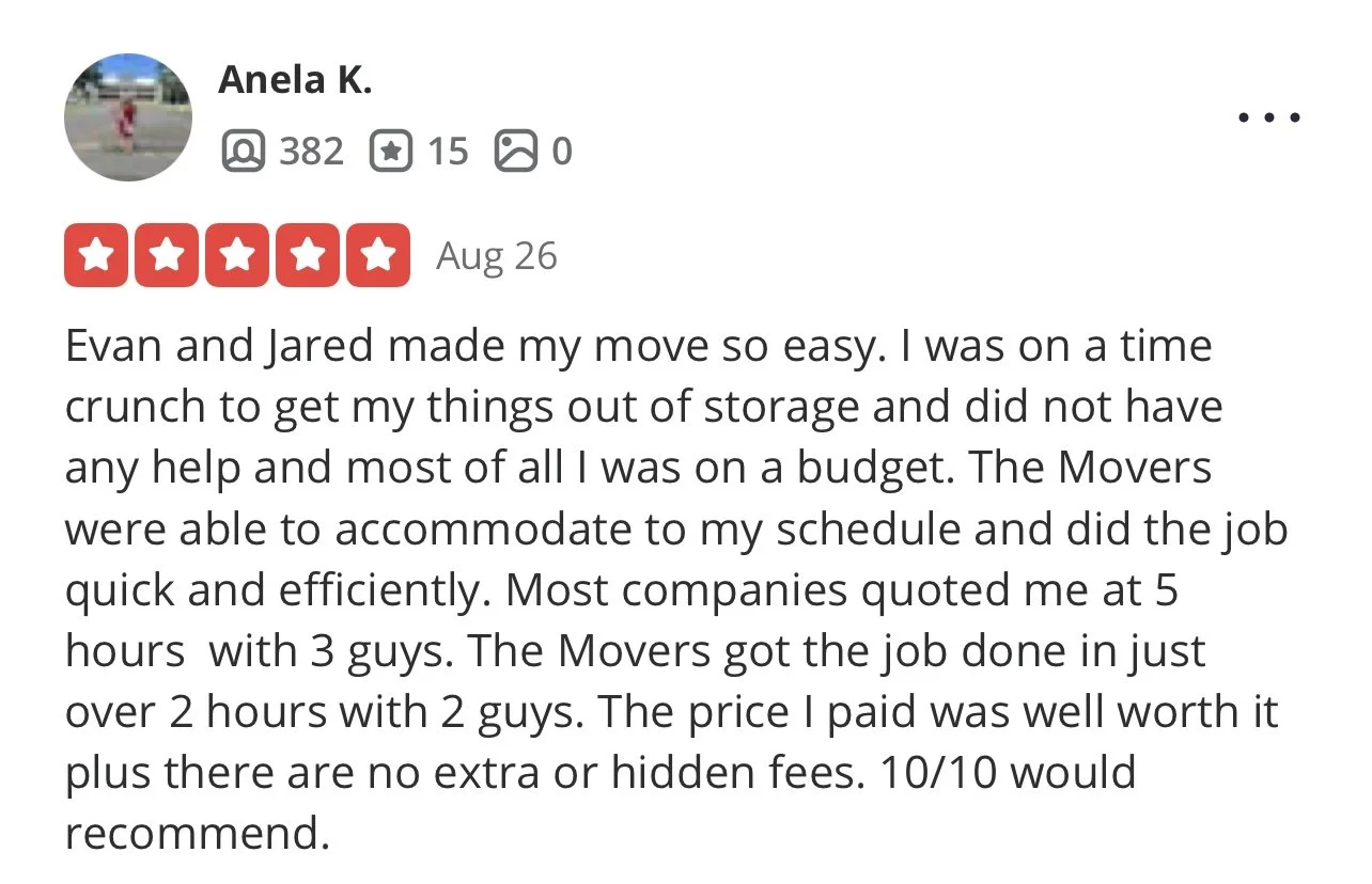 Highly recommended for 4+ bedroom house, homes with a garage, over-sized/heavy items(350lbs+), same day pack and move, or if you want a faster move.